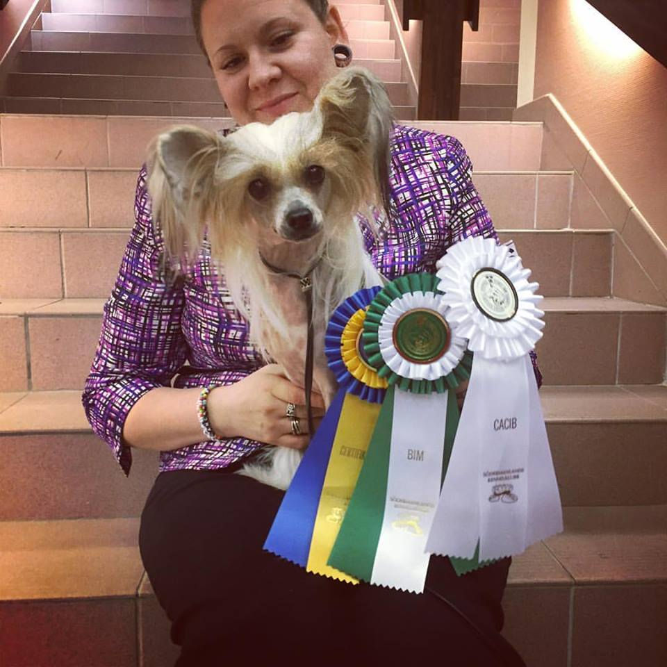 Jean Dark Head Over Heels won the class, and later on best female, BOS, CACIB and her 7th CAC!! We're just waiting for her to turn two years, so she can take one CAC and become SECH.
